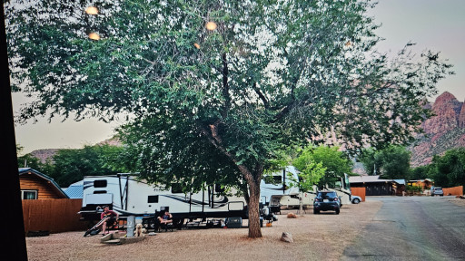 We stayed here for one night and the location is conveniently located near the west entrance of Zion. The area is beautiful, soaring cliffs and red rocks. There is a river that runs along the campground but was contaminated during our visit. The only downside to this RV park was that the lots were sand covered, not gravel. Travelers from Arizona, beware: the fastest route is 89 but you need to pay a $45 fee to drive through the south entrance of Zion to get to this RV park.