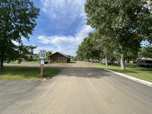 We were in site 5, which was just big enough for our 22.5 foot trailer and the truck had to be tucked sideways beside it to fit. Quite close to our neighbours so not very private, but the washrooms and showers were clean, the grounds were well maintained and the staff was excellent. We would stay here again if we go back to Cardston… it is typically quite windy there and I’m not sure I could ever get used to that…