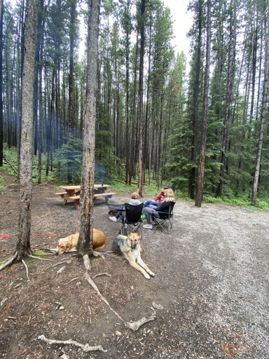 Large , private campsite with fire pit and table. Hook up water and electrical. Beautiful and peaceful. Be aware of active grizzly bear in the campsite and travel in groups, keep the sites clean and food stored properly.