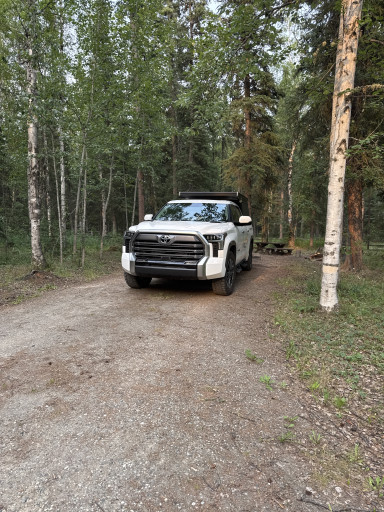 There are a few spots with lake view but those sites are in a wide open parking area with no shade. The ones located in the trees are about a 5 minute walk to the lake. When we arrived there were a lot of overflowing garbage cans down by the lake.