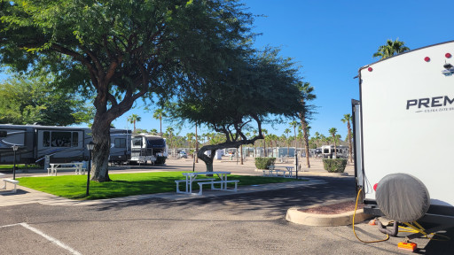 myself , my wife and 2 kids stayed a night passing through. it was beautiful, i felt safe. nice people. Mr Bob drove by to check on everyone from time to time. picnic tables at ur camp, cool walking trails but we saw a snake, its the desert so be careful. 30 bucks. highly recommended....power hookups, water hookup, sewage hook on the way out, not at the camp. thanks for everything.