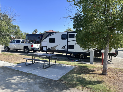 Nice,quiet,friendly staff in & out. Nice picnic area & little dog park. Place is well kept up. Sometimes you can smell Bakersfield lol. Only drawback was only one bathroom by the office. It is shared men & women with only one shower. But for $41 this place is still a great stay. Also all sites are pull through if needed. Conveniently off the 99.