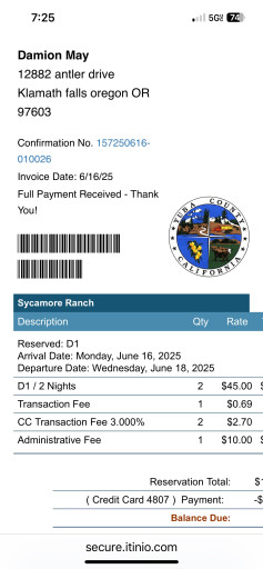 Not too many places around here. Just passing through and decided to stay 2 nights. Camp host was really cool. Camp is in perfect condition. Showers & bathrooms are clean. Lots of shade. Water snd electricity. Was $45 + taxes & fees? No envelopes for cash. Online only and cell reception is good. We have t-mobile. hot spotted onto our roku tv streamed nicely. We will definitely stay here again!
