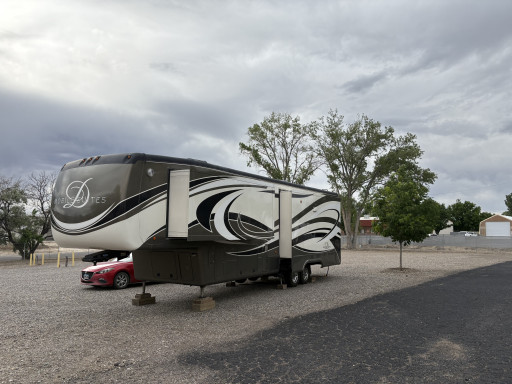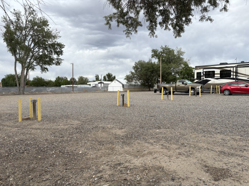 Moose lodge 270 in Grand Junction, Colorado. Suggested donation is $20 a night. The entrance’s are narrow. Looking at the satellite image do not enter the gate on the right side (green X). Very low hanging limbs & branches. Enter on the left side (red arrow). The yellow line is where the power posts are. Nothing but 20amp plugs on both sides. They could have up to 10 rigs if parked correctly. Not sure if their electric could handle it. I was pulling 15amp and the volts were 109-110 volts. There is a water spigot and dump station at the back of the lodge (see the purple arrow). In my spot I also picked up 5 large handfuls of broken glass. I did not check the other spaces. I was able to level with my right wheels off the ground. Very close to shopping.