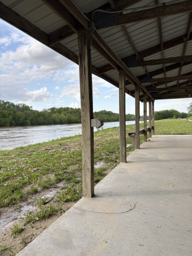 Nice little park gravel full hookup sites, 50 amp needed our adapter. Utilities are behind your trailer need plenty of water hose Right on the river. Pavilion, bathrooms are just a toilet and sink.