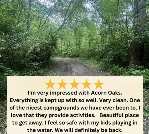 Acorn Oaks is a great campground. Lots to do. They have a swimming and fishing pond. Their recreation room with lots to do. A playground for the kids and lots more. The owners are wonderful.
