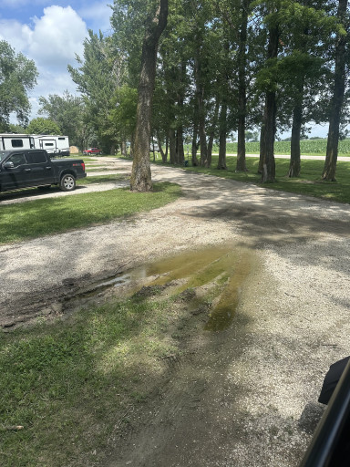 Nice location right off the highway but you do not hear the highway. Enjoyed our time here watching the farmers work their land took a day trip to Lewis and Clark State Park and drove some of the scenic byways. We had a nice long pull thru site. Bathhouse is large & clean. Only negative is standing water at the end of our site.