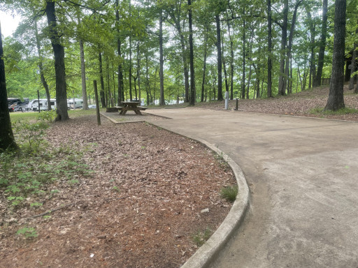 After sleeping in RV parks beside the interstate for a week, I was looking for a quiet spot and found this park. It was a Wednesday and we had absolutely no one camping close by. Beautiful lake with a trail around to walk the dog. Campfire rings, lots of trees and quiet! My dog and I explored the woods and had a great time. Bathhouse was clean. I saw a great playground and a beach there as well. Close to town and MANY excellent restaurants in the area. We ate sushi at RAW. Wonderful! Also, laundromat now too far away.