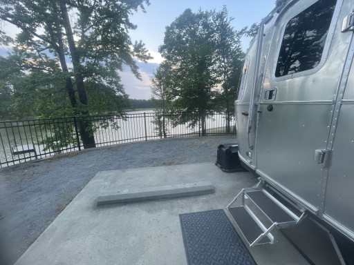 Paid $25 for a single night stay. No discount memberships accepted. Full hookups (50amp, water, sewer). Our neighbor said the internet was good but we never used it. Had no problems fitting our 42ft 5th wheel and full-size pickup on the site. We stayed in spot 23. It was a back-in level site with a giant cement pad surrounded by a railing on the back and sides. Beautiful view of the lake out our back window in the morning.