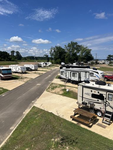 My site had the sewer connection way too high (12” or more above the ground)-that will not work well for a motor home. 50 amp service available and nice concrete pads. A very clean park with mostly new facilities. We were there Jan. 1st so the ground was soggy. Overall, nice people and a good experience.