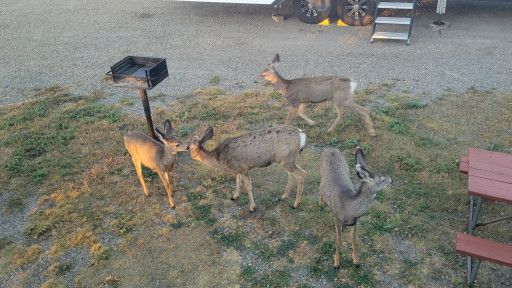 This is our go-to for 1 night stay when traveling I25. Easy in, large big rig friendly sites. Close to fuel and restaurants. Pretty quiet. Even had some deer visit us in the morning.