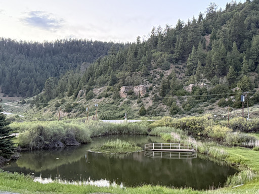 We stayed her for a weekend trip to Angel Fire. This is a small campground with about 25 spots located about 250 yards off Rt.64. This road isn't heavily traveled, so not much noise from the highway. The spots are pretty roomy and the hookups are all in good condition. The camp hosts were very friendly and helpful during our stay. Only downside is that the bath house and restrooms were under renovation. Not much of an inconvenience as we had full hookups. We'll stay here again if we are in the area