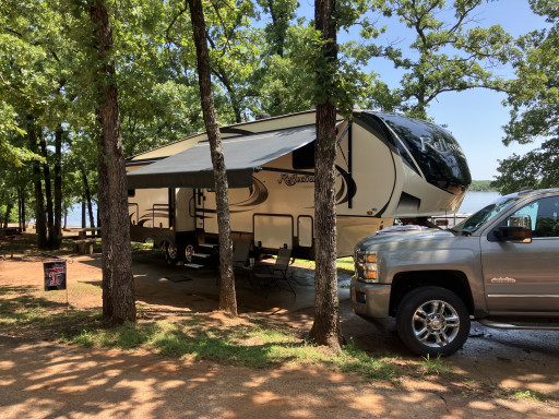 Professionally run. Very nice hilly campground. Nicely maintained sites with trees. Feels like an upstate New York resort in the woods. Private restrooms. Easy on and off I-40. Easy turns for big rigs.