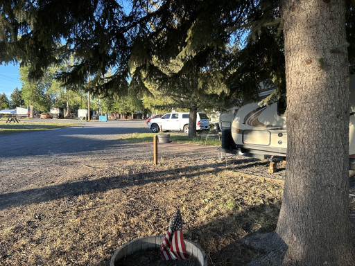 We stayed only one night at this park and it's very nice. It's right off Hwy 20 but the road noise traffic is surprisingly low! Not too many trucks. The sites are generously spaced apart and the grounds are well maintained. The owners are very nice as well. It's just outside of town and can accommodate both large and small rigs with pull-through and back in sites. They have a laundry facilities, showers and a nice little store for goodies and Ice. They're pet friendly too with a nice big place out back to take your dog. Some sites are shaded, some are not. We will definitely consider this place again in any future travels that way.