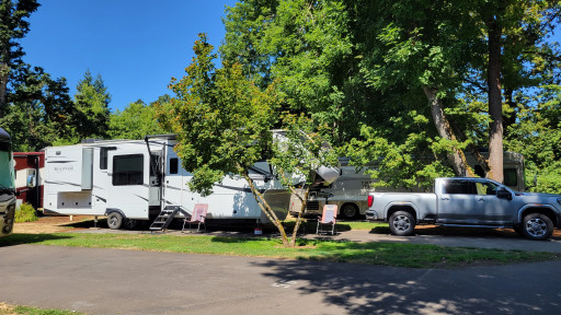 This was a quick decision reservation for this Park. We had been staying in Neskowin OR and wanted to make a day trip to Creator Lake national Park. All of the campgrounds close to the national Park were full, so I looked for a private campgrounds, and found this one. The staff was very nice, the Park was really quiet and peaceful, nice pull through sites and the shower bathroom buildings were very nice and clean.
