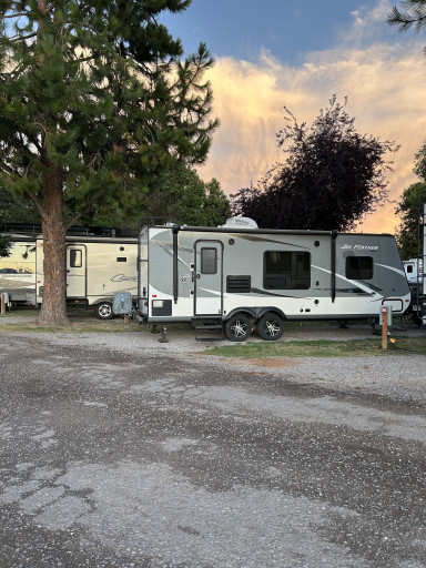 Unfortunately, this park was unpleasant. First off, we had to cram ourselves into a site that was awkward to get into and too small for our rig. Staff didn't care at all and was not helpful. The sewer pipe was a loose PCs fitted into another pie that was not airtight, allowing sewer smell to permeate the area. There was also an abandoned site next to us that was roughly fenced off but obviously not adequately closed and this also emitted a sewer smell. My spouse saw a big rat run from the laundry to the garbage bin. The "resort" had no rules or quiet time that we were aware of. Neighbors left their dog tied up outside all day and he whined and cried. Kids invaded our site and drew in the dirt around our trailer and truck. Hotspot wifi was terrible. Only good thing was it is located between Crater Lake and Klamath Falls. We will.not stay here again.