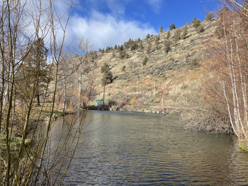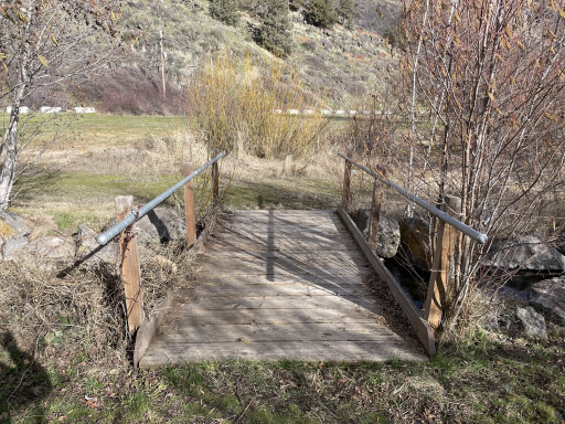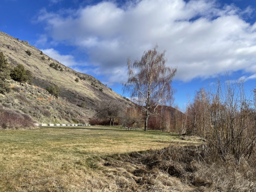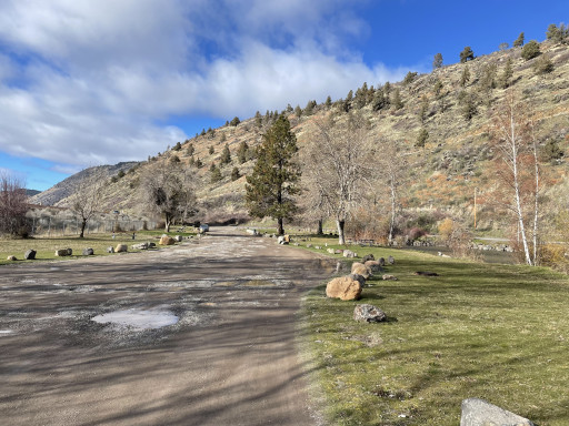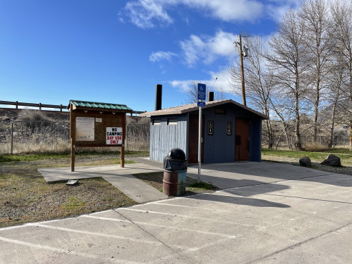 they kicked out homeless. cleaned it all up. but now no camping.....nice place to stop for a break and let the dogs out. vault toilets were nice and clean. right off 97. nice little water streams with clean water. a little walking bridge. plenty of green grass & shade trees. small boat launch. i think access to the lake. would have been a nice convenient place to spend the night while traveling if the homeless wouldnt have ruined it...... now just a nice park to take a break!