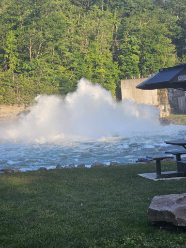 The sites are pretty big but you do have to stay inside the gravel and off the grass. We had great cell reception. It's perfect if you want to bike or kayak the Yough from Confluence. Only 20 mins from Ohiopyle. The dam does make it a little loud but it's only background noise.