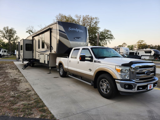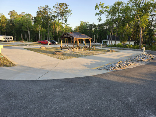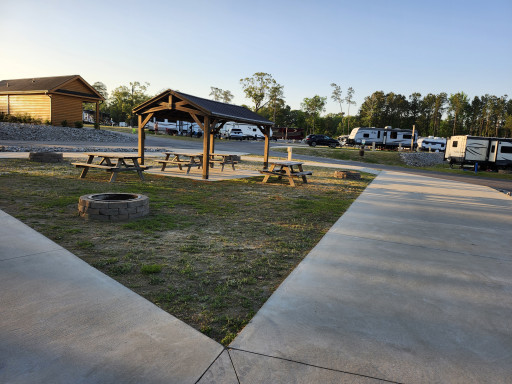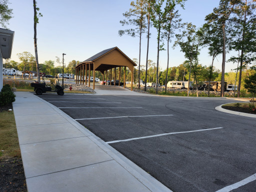 Stayed 1 night in pull thru site.was long enough to keep truck and camper hooked up.the staff was great arrived late and guard showed me to the site .the campground was spotless along with the showers and bathrooms. Has back in , pull thru and buddy sites. Will stay again .nice pool area .paved and level sites.gated access very nice campground.!!!