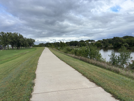 The park is next to the James River and has a golf and disc golf course. Large Cottenwood trees provide shade.