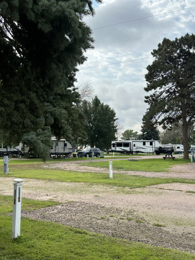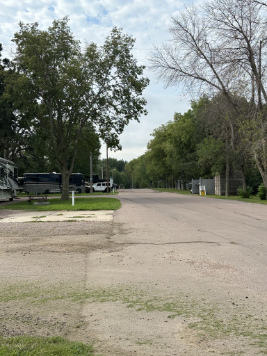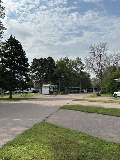 This is a nice campground but is very close to I29. Very loud highway noise. We were placed in a very nice spot but was right next to the freeway. The other problem is that you can not get into the campground directly from the east side off the freeway. Need to go down a block and go around the block to come in from the west to get into the park. They have free cable but no WiFi at the time we are here. Supposedly working on it. They take Good Sam and Escapees.