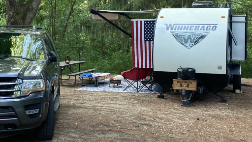 We stayed from Sunday through Wednesday, and it was generally quiet during the week. On Sunday, the beautiful lake was lively with speedboats, kayaks, and fishing boats. However, by Monday through Wednesday, it was nearly empty. Peaceful and serene. The campsites offer a good amount of privacy, though many are not level, so plan accordingly. A newly built, spacious shower house is available and kept very clean, which is a nice bonus for those in need.