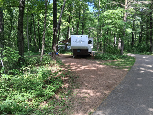 This is a good spot for short stay. Bathrooms are very clean and campground clean. Be aware that there are trains and highway noise so stay on the lake side. A lot of room at sites and separated by trees.