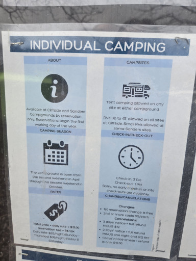Haven't camped here but live in area and thought I'd add a little info. It's $28 a night. Honesty system. Some sites have water and electric. There are flush toilets and showers. It's not a busy campground so if your looking for an overnighter you have a very good chance of getting a site here. No wood available but there are fire pits. No dump station.