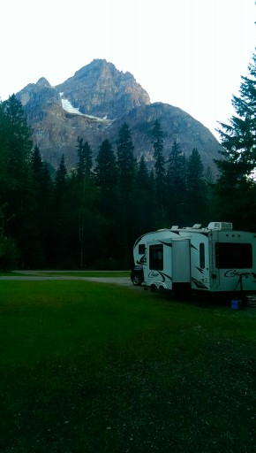 Just off the hwy not far from David Thompson Resort. Camping is free but take out your garbage and keep the area pristine. No toilets or fire pits so be sure to respect “our backyard” in the West Country.