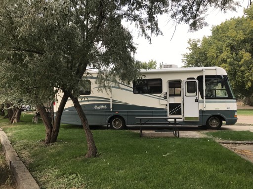 11 or 12 sites on concrete slabs Water & electric free dump at info center 5km east on hwy1. Nice 18 hole Coulee golf