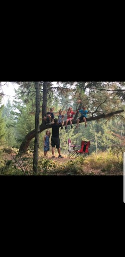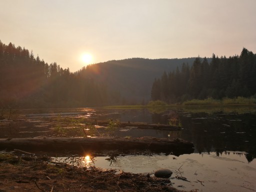 10km south of Cranbrook, turn right on Lumberton road follow for 3.7 km until you get to a rock quarry, turn right and go through the quarry, follow road for 2km, keeping straight at forks. The road is very rocky but doable for 4x4 vehicle. Stone built fire pits and picnic table. View of the lake filled with beavers and eagles. Lake isn't ideal for swimming. Sadly no frogs could be heard at night, lots of fish. Beautiful creek to cool off in nearby. Lots of litter and broken glass, so clean up after yourselves!!