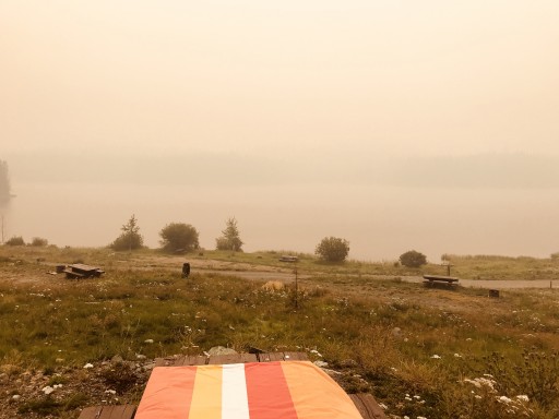 Unfortunately for us the smoke from the BC fires was heavy so we couldn’t really see the opposite shore (or sun for that matter lol) but the lake looks beautiful and there is just nothing like sharing nature with nature and the loons were our soundtrack! Awesome.