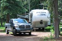 Clean facilities, friendly staff, adequate size spaces, single dump site. Campers were combined tourists and local work crews. No noise issues. Washers and dryers are new and work fine. Negatives are no dog run area, the river is off-limits year-round due to a protected salmon spawning area, park is right next to the highway and a lot of big trucks go by.