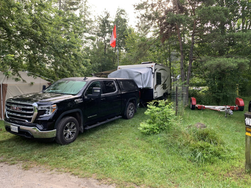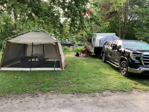 Site 58, very close to the Sudo boat launch. Park entrance is packed day use vehicles, avoid Sat afternoons. A good mixture of open, private or wooded sites. The comfort station at High Bluffs has 7 showers; the hot water was good for a full campground. Lake Ontario is low once again so the beach is great.