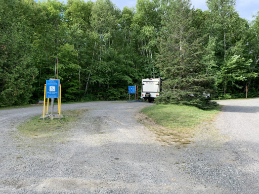 22 km in from the highway; half of which is on patched up asphalt. The dog beach is nice; you park on the edge of the grass if you don’t walk there. Picnic tables, water tap and vault toilets are right there. Several vault toilets are out of service and being repaired. There is a basket ball hoop at the top of the hill between the main beach and dog beach. There one comfort station. It is clean. There are 6 showers. The washer and dryer cost $2 each. Cell service is none to one bar. You get reception at the bulletin board beside the comfort station or 2 bars at the dog beach. Sites along the water have their own access for those who fish off a boat. The camp ground is built on a hill so everything is up or down. Pull-thru sites are small. Most back their RV out. Staff are pleasant and helpful. The camp store is very small and limited in items. Water refill and dump station is around the corner before the park gatehouse. One can use this for free if you want to make the trip in.