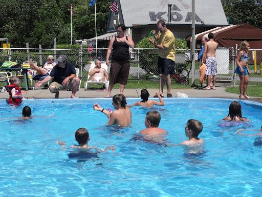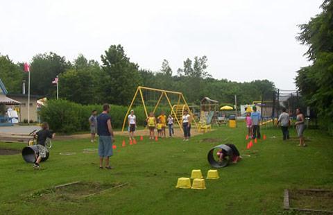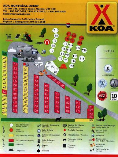 Stayed here for a night, 50amp pull through was very expensive. Wifi was non existent. The site was level and large. Staff were nice and spoke great English, which we really appreciated since we barely speak French. Lots for kids to do, pool, play ground, small pen with a couple farm animals, inflatable bouncy trampoline and close to Montreal if you want to see the city. Hwy and train noise didn’t affect us but it’s there.