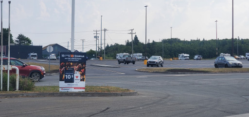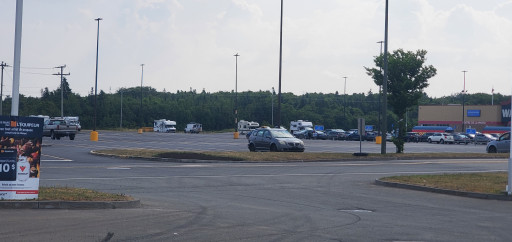 8-10 RVs in the parking lot. The store was closed at 8pm when we got there, and opened at 8am. Spent a quiet night and weren'tbothered by anybody. There was a sign in French, which I don't speak, that, based on the pictures, I believe was indicating large vehicles to park to the left of the building in the gravel area. That's where we spent the night. Work crews showed up about 7:30 and started doing some work in the parking lot. Very level gravel. One of our best Walmart stays.