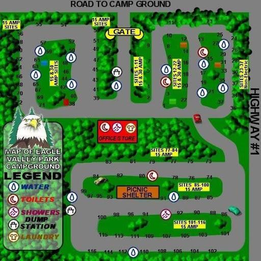 Camp site was substan and you can hear the highway at night and park on the road up against the trees so you can't open your awning and you can hear the people racing their golf carts on the road beside your camper at night and the price should include swimming not a separate price and wood at first night to for the price you paid for.