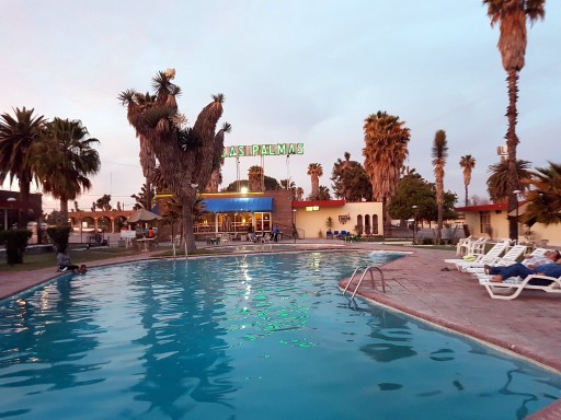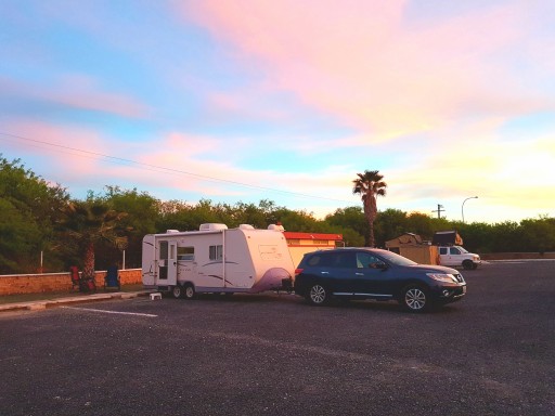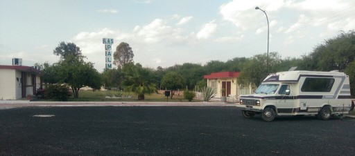 This is just off the #57 in a gravel lot behind the motel. The bathroom is spotless. The pool was cold but refreshing in March. Walmart is walking distance. The WiFi reached us. Not all electric plugs work but many to choose from. You only have a small strip of grass behind then a wall and fence so not much room to walk a dog. We stayed 3 days.
