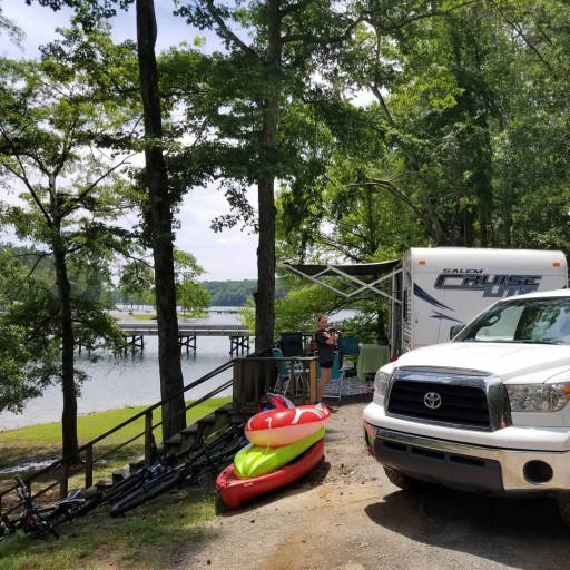 Pretty decent campground. Our site (D77) was pretty nice with a fairly level but narrow pad. some sites have full hookups, but ours was water/electric only. Several other sites looked like they could use some TLC. There were lots of well marked and mapped hiking/biking trails, playgrounds, picnic areas, and a swim beach. Our biggest complaint was the price. In an effort to capitalize on their proximity to the University of Alabama, they jack the prices through the roof on GameDay weekends. After taxes and fees, our spot was nearly $90/night on Friday and Saturday. Our fault for not checking first, but it seems like the locals know. The park was empty except for the campers that have seasonal GameDay passes, and the weather was perfect for camping. We will make sure to check the football calendar before we plan another trip here.