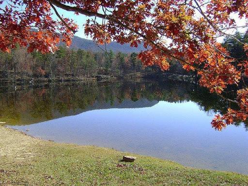 Lower campground more private. If you are staying with kids the beach and better playground are at the lower campground. Not 5 star because campground road need maintenance, lots of dead trees..one actually fell down near an empty campsite. Also lots of fire ants...park needs to take care of fire ant hills. Hiking and biking is great! Might have to drive to the top area a few times for hikes but it's only a mile up the road.