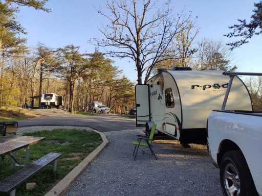 We stayed the lower camp with full hookups. The site was level but most around us were so unlevel they had tires off the ground. The sites were very tight causing us to back out of a pull through site because the next site had blocked us in when our stay ended. Getting to the campground was a mountain twisting turning road with steep inclines. There is a very nice city of Oxford where you can find anything if you come down off the mountain. All that aside, the mountains are beautiful with hikes that will humble your soul. The grandeur of the mountains are always something to behold. The park is the oldest state park in Alabama so the buildings are beautiful. The only reason we wouldn’t stay here again is the road and the tight sites, everything else is a must see.