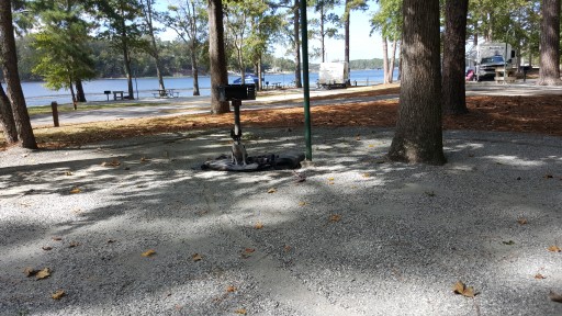 Level concrete pads and asphalt drives with extra parking for towed vehicle. Serene lakeside sites with fabulous views. Bath houses, if you need them are very clean. We stayed only one night on our way to a longer term stay. We would love to come back and stay awhile.