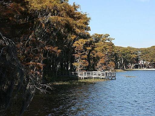 No longer a state park; now run by the city of Florala, calling it Lake Jackson RV Park. Awesome staff and camp host. Full hookups. Level, gravel spots. Plenty of space between sites. Free firewood, laundry: wash $1.50, dry $1.00, free hot showers, clubhouse that can be reserved free, if you're staying here, for birthday parties, etc. Lots of water activities available. Highly recommended.