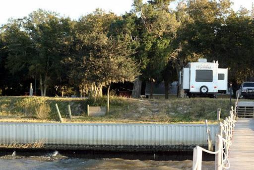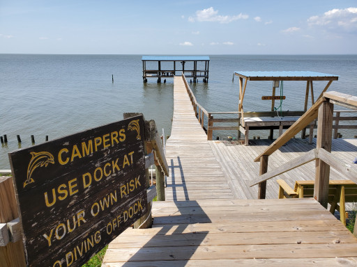 I have to admit I was a little skeptical at first. There are some full timers but it was not run down or messy. We were in slot #4 right on the water and couldn't have been happier. All the guests were very friendly. There is a fishing pier that had a table and chairs that we enjoyed with coffee every morning. We fished some. Didn't catch anything big but had a blast. Restrooms were clean and you can't beat a free laundry room with a book exchange. Got the best picture of a sunset. Even got to watch dolphins swim by. Loved it! Will definitely be back.