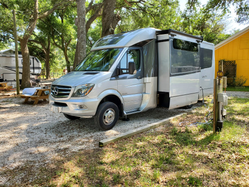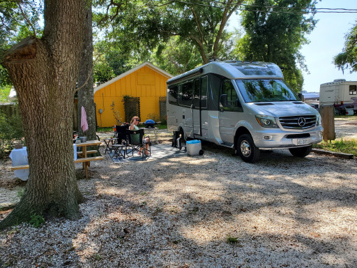We stayed here for 2 nights in Jan, 2022 in a 30’ Class C motorhome. Arrived on a Sunday and the office was closed. The board says call a number to check in. We called 3 times, no response. All the board gave us was our site number. I sent an email asking for the Wi-Fi info. Again, no response. No response Monday until I called a couple of more times and got the owner on the phone Monday afternoon. We finished the registration and got the info for the Wi-Fi which my older (2016) computer could not see since the only network was 5GHz. The bathhouse was advertised as “new in 2013” and looked like it had not been cleaned since. My partner would not use the ladies as it was too filthy. The men’s had no TP or paper towels for the two days we were there. There are many rules esp for pets but there is the “camp dog” that runs loose and defecates where it pleases. The only redeeming quality is the free laundry. Next time we would stay down the road at Island RV Park.