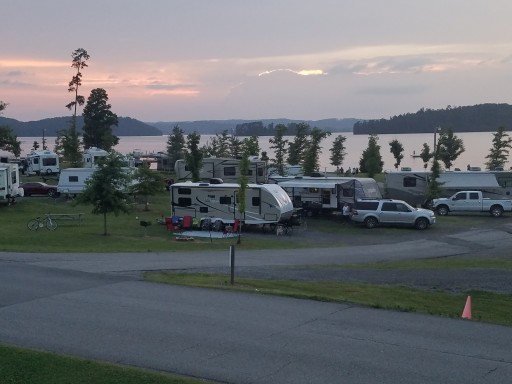 The park itself is beautiful and there is plenty to do there including golf and zip lines. The sites sit right by the lake, which is both nice for the view, but annoying for the boats. They had what sounded like the start of a fishing tournament at 6:00 AM on a Thursday. We got woken up by a guy speaking on a loud speaker and the rumbling of approximately 100 bass boats on the lake. The site we had was basically dome shaped so either bring a few leveling blocks or play with it to get the wheels leveled on either side of the dome. The site also appears to be done with crushes recycled asphalt so make sure you bring shoes/slides as it hurts to walk on it barefoot.