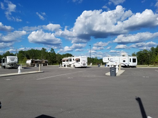 Paid $44 per day. Did not accept any discount memberships. Visited in late November with no reservation. Half empty lot. Full hookups (50amp, water, sewer). We stayed in spot 87. It's a flat, clean, well lit lot. HUGE playground that was just built last year for the kids right next to the RV lot. The power and water are conveniently located in a modern pedestal. The sewer is a little tricky to attach because you park on the asphalt and the sewer is up on the curbed island. So it takes a bit of work to get the required downward slope for gravity to do its job. Most people had something stacked on the asphalt to build up to the level of the curb. Each island has a large trash can. No restaurants, grocery stores or gas stations right next door, but it's only a few minutes to a couple different strip malls. Seems like a very nice area. Hidden phone reservation fee of $4 per day. Book online to avoid that fee.
