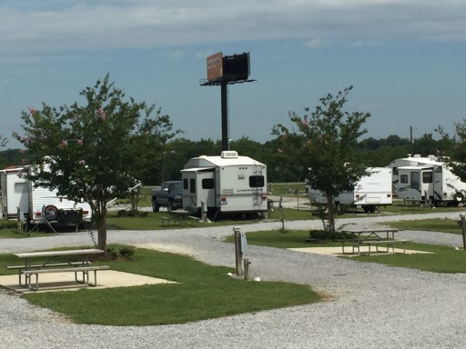 New campgrounds are tidy, well maintained. Full hooks offer good water pressure, convenient utilities, nearly level sites, fire pit and picnic table. Bathrooms and showers are squeaky clean, heated and a/c'd and convenient. Laundry has excellent new equipment.Grounds are open nicely packed gravel with grass between sites, but no shade from the South Alabama sun. ATT cell Svc is acceptable. WiFi sketchy except near laundry/office. Sites views are mostly interstate, but noise is not a bother. Recommended as an overnight comfort stop on a journey in mild seasons. Visited here in a motorhome. Will return in cooler weather.