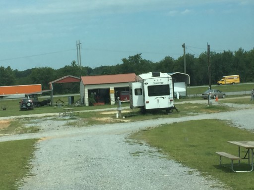 We stayed in space 23 with our 43’ Class A with tow. Did not need to unhook. Level site - gravel with extensive grass and trees. Farthest away from I65. Very esthetic and relaxing. Escort to site and everything you might need in well stocked office w/porch and rocking chairs:) Same exit as Loves and stores and food nearby. Only staying one night but this place rates multiple night stays. Family/Veteran business that checks all the boxes. Will stay again- check it out!